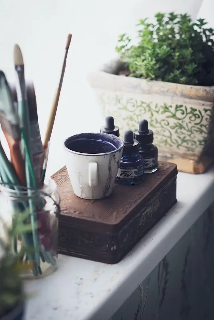 أما بالنسبة للأدوات المستخدمة في الرسم بالحبر الصيني، فإن أهمها هو الفرشاة. تمتاز فرشاة الحبر الصيني بأنها مصنوعة من شعر حيواني طبيعي مثل شعر الأرنب أو الذيل الحصان. تعد الفرشاة أداة حساسة ودقيقة تستجيب لحركات الفنان، وتساعده في إنشاء تفاصيل دقيقة وخطوط متدفقة. بالإضافة إلى ذلك، يتم استخدام الورق الخاص للرسم بالحبر الصيني، والذي يُعرف باسم "ورق الحرير الأرزي"، وهو مصنوع بشكل تقليدي من ليف الأرز. يتميز هذا الورق بقدرته على امتصاص الحبر وإظهار التفاصيل بشكل واضح.