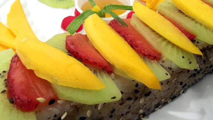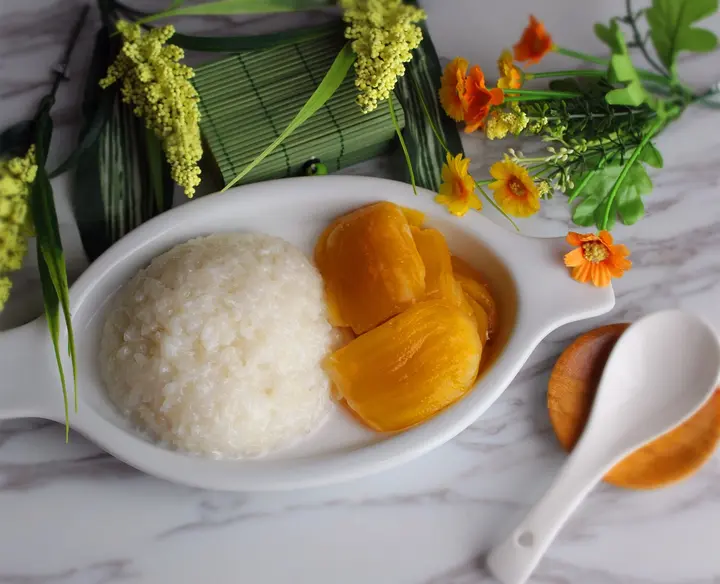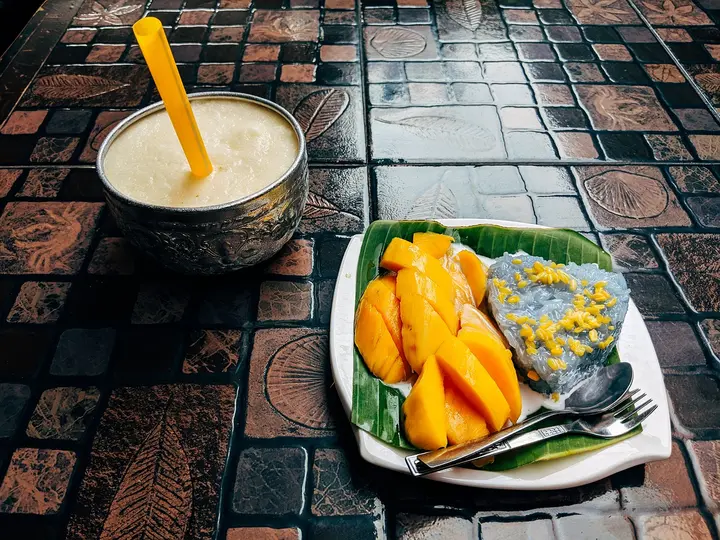 تتراقص روائح الفاكهة العطرة والأرز اللزج على مقدمة الحواس، مما يثير الشهية ويدهش الذوق بطريقة لا تقاوم. إنها تحفة فنية لا يمكن تفويتها، أرز المانجو اللزج. تعتبر هذه الحلوى الشهيرة من أشهى الأطباق التي تعتمد على المانجو الناضجة والأرز اللزج الذي يذوب في الفم. فطعمها الرائع وقوامها الناعم يأسر القلوب وينتشر في كل خلية من خلايا الجسم.