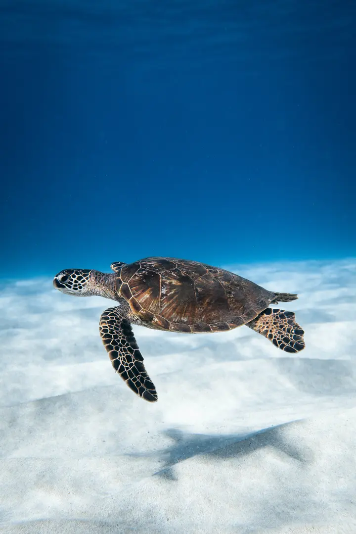 تتلألأ هذه السلاحف البحرية بسمرة الذهب وتأخذنا في رحلة تسافر بنا إلى عوالم سحرية. تحوّل أشكالها وألوانها باستمرار في تكييفها مع بيئتها. في الشباب، قد تكون أشكالها ملونة ومتعددة الأنماط، مع خطوط مذهلة ونقوش فريدة. تتغير مظاهرها حسب ما يحيط بها، تنتقل من الأخضر المتألق إلى الأزرق العميق، ما يمنحها تموجات متلألئة تشبه لوحات فنية حقيقية.