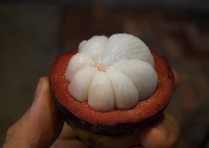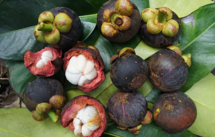 تعتبر المانغوستين فاكهة ذات طعم فريد ولاذع، حيث يُعتبر لبها الأبيض النقي هو الجزء اللذيذ والمأكول. تحتوي هذه الفاكهة الرائعة على قشرة سميكة من الخارج وقشرة ناعمة ولامعة من الداخل، مما يجعلها قابلة للتقشير بسهولة.