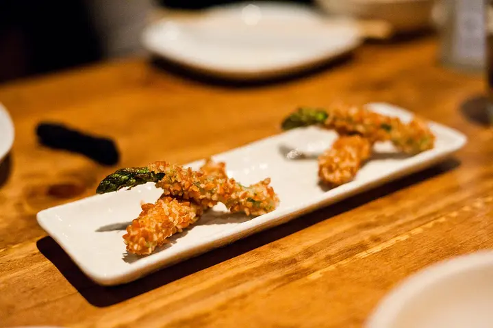 3. جفاف المكونات: قبل غمس الخضروات أو البحريات في العجينة ووضعها في الزيت، تأكد من تجفيفها جيدًا. قد يرطب الخضار المبلل الزيت ويؤثر على قوام التمبورا، لذا من الأفضل تجفيفهم تمامًا قبل القلي.