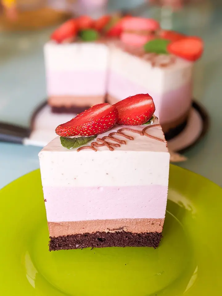 في هذه الوصفة المميزة، سنأخذك في رحلة ساحرة إلى عالم الفراولة والحب. تعد كعكة الموس بالفراولة تجربة فريدة من نوعها، حيث تجمع بين نكهة الفراولة الطازجة وقوام الكريمة الناعمة لتقدم لك لحظاتٍ منعشة ومليئة بالحب.