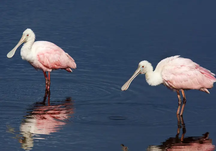 طائر أبو ملعقة الوردية (Platalea ajaja أو Ajaia ajaja): هو طائر وردي اللون. موزعة في أمريكا الجنوبية ومنطقة البحر الكاريبي وتكساس ولويزيانا وكولورادو في الولايات المتحدة.