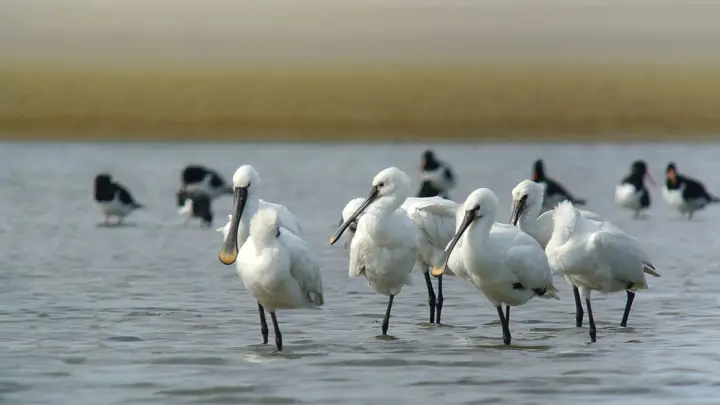 طائر أبو الملعقة ذو الوجه الأسود (Platalea Minor): يتم توزيعه في شرق آسيا بما في ذلك البر الرئيسي للصين وهونج كونج وتايوان وكوريا الجنوبية واليابان.