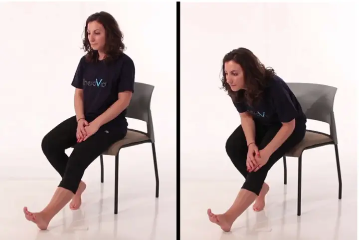 الطريقة: مدّ ساقك اليمنى إلى الأمام مع إبقاء قدمك اليسرى بأكملها على الأرض. وأنت جالس في وضعيّة قائمة ورأسك بمحاذاة عمودك الفقري، ابدأ بالانثناء إلى الأمام محاولاً الوصول إلى أصابع قدميك اليمنى. إذا كان كرسيّك ذا عجلات، قم بقفل العجلات لتجنّب التدحرج إلى الخلف. استمر في هذا الوضع لمدة 15 إلى 30 ثانية ثم كرر ذلك على الجانب الآخر.