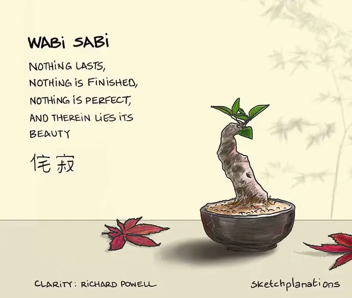 مفهوم وابي سابي هو أنه بدلاً من الكمال، ينبغي للمرء أن يجد الجمال في عدم الكمال. ربما تكون قد شاهدت وابي-سابي في السيراميك الياباني الجميل ذي الشقوق الدقيقة المليئة بالذهب لإبراز الجمال في طبيعته غير الكاملة.