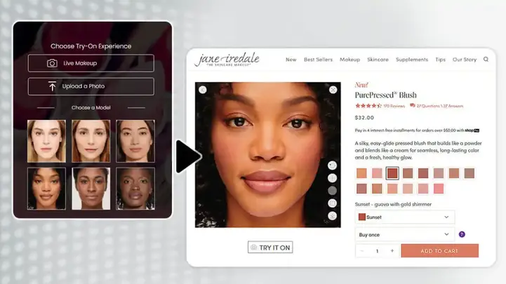 قولي وداعًا للعينات الفوضوية والاختبارات صعبة المأخذ في المتجر! تستخدم أداة التجربة الافتراضية الخاصة بـ Jane Iredale كاميرا هاتفك الذكي لتراكب ظلال وأنماط الماكياج المختلفة على وجهك، مما يسمح لك برؤية كيف تبدو على وجهك قبل اعتمادها وشرائها. يُعَدّ هذا بمثابة تغيير في قواعد اللعبة للتسوق عبر الإنترنت وتجربة مظاهر جديدة دون مغادرة منطقة راحتك.