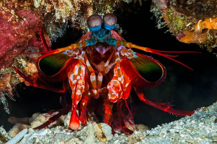 غالبًا ما يتمّ رصد "قريدس فرس النبيّ" الشبيه بالكائنات الفضائيّة وهو يندفع عبر قاع المحيط أو يطلّ من جحوره المشيّدة بعناية. ودائماً ما تكون رؤيته مدعاة للسرور. تتنوّع كثيراً أحجام وألوان هذه القشريّات آكلة اللحوم المحيّرة، وعلى الرغم من أنّ بعضها يعيش في المياه المعتدلة، فإنّ معظم الأنواع تعيش في المياه الاستوائيّة وشبه الاستوائيّة في المحيطين الهنديّ والهادئ. ولكن لا تنخدع باسم هذا المخلوق المجهريّ، فقريدس فرس النبيّ هو أيضاً أحد أكثر الحيوانات المفترسة فتكاً في المحيط. فيما يلي أهمّ عشر حقائق عن قريدس فرس النبيّ لمساعدتك على اكتشافها والحفاظ على سلامة إبهامك وأجهزة تصويرك...