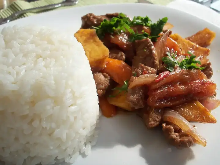 لومو سالتادو هو طبقٌ يُعَدُّ بالقلي مع المزج بالتحريك بطريقةٍ تختلف من مكانٍ إلى آخر، ولكنه يتضمَّن عموماً شرائح من لحم الخاصرة مع الطماطم والبصل وقطع البطاطس المقلية فوق الأرز. إنه مزيجٌ عشوائيٌّ، ولكنه يُسيل اللعاب، لذلك يجب أن يكون على قائمة الطعام التي يجب أن تأكلها إذا قمت بزيارة البيرو.