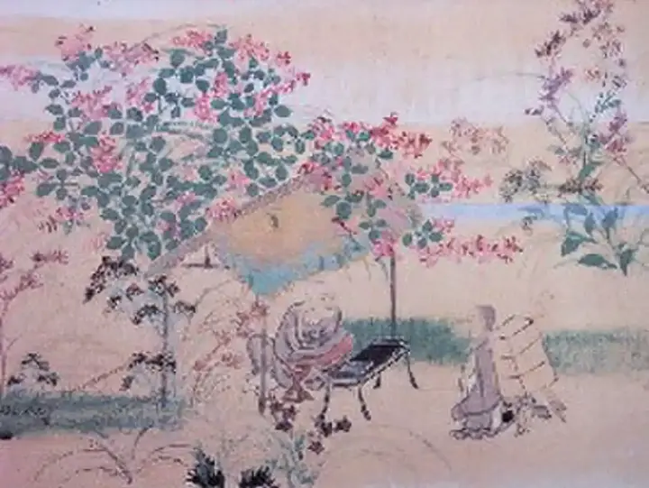 يصور هذا الزوج من الحواجز لإيكي تايغا، أحد أبرز الرسامين المثقّفين في اليابان، موضوعين صينيين: تجمّع جناح الأوركيد على الشاشة اليمنى، وعلى الشاشة اليسرى، مهرجان حصاد الخريف.