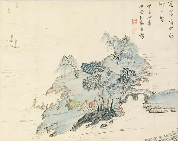 أحد أشهر الفنانين في تاريخ الفن الياباني هو سيشو تويو؛ وهو معروف بأسلوبه الفريد في الرسم وتأثيره الواسع النطاق كمدرس وكاهن بوذي. تأثر الفنان بشدة بالفن الصيني، وسعى إلى ربط الثقافتين معاً في عمله، مع غرس معتقداته البوذية وجمالياتها أيضاً. يصور المشهد الشتوي رجلاً يصعد منظراً طبيعياً ثلاثي الأبعاد ولكنه مسطح، ما يثير مشاعر العزلة.