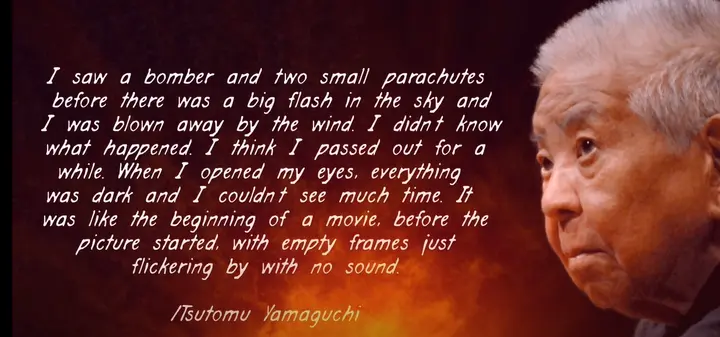 • نجا ياماغوتشي من انفجار هيروشيما رغم إصاباته الشديدة، وتمكن بصعوبة من العثور على قطار يقله إلى ناغازاكي.