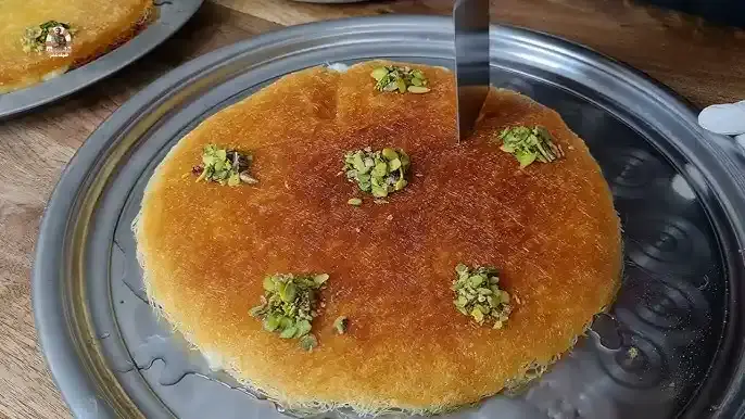 المكونات والتحضير: تُصنع الكنافة من شعيرات العجين الرقيقة التي تُدهن بالسمن وتُحشى بالجبنة العربية الطازجة أو القشطة. بعد الخبز في الفرن حتى تصبح ذهبية اللون، تُسقى بالقطر الساخن لتُصبح رطبة ومتماسكة.