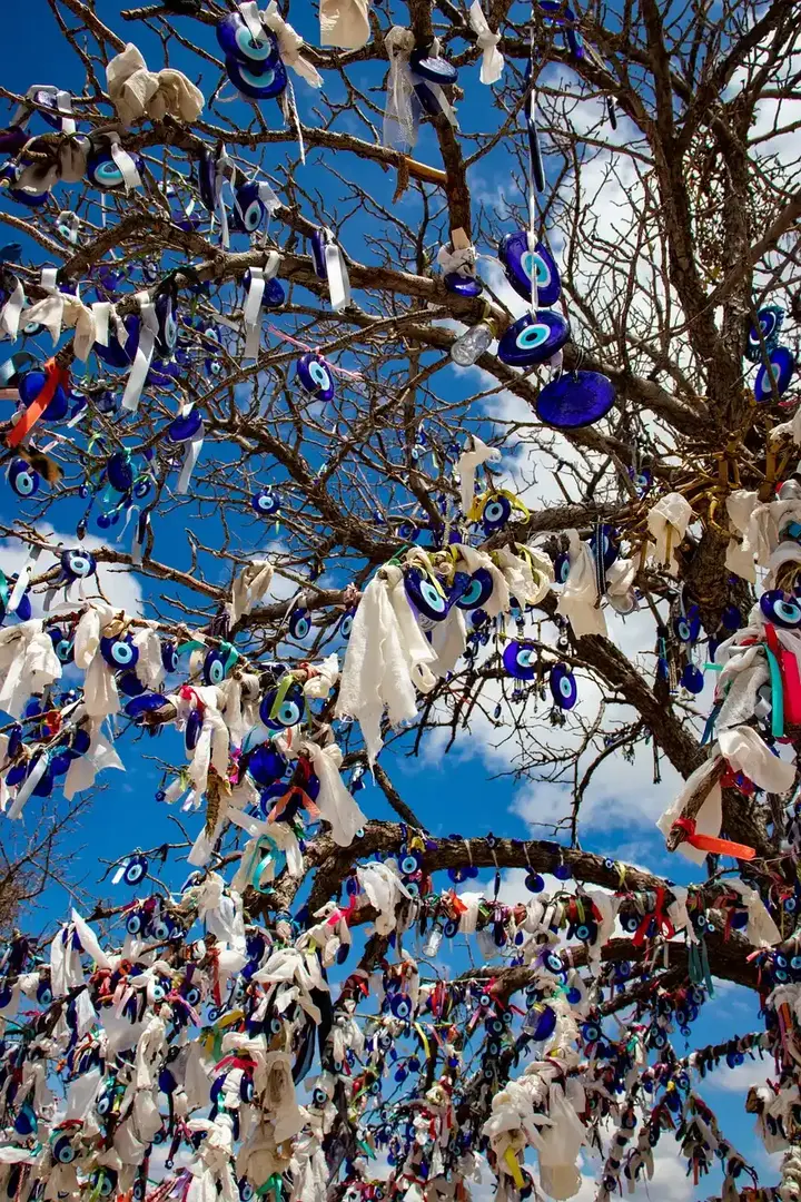 يؤمن الأتراك والعرب بالحسد ويعتبرونه شر لابد من الحماية منه فقد تم ذكره في القرآن. وستلاحظ في الكثير من البيوت التركية والعربية وضع العين أو الخرزة الزرقاء على أبواب البيوت أو بداخلها حتى أنهم يقومون بإهدائها للأهل والأصدقاء عند ولادة طفل لتثبت بدبوس على ملابسه فهي بمثابة تعويذة لتحميه من الحسد والعين الشريرة.