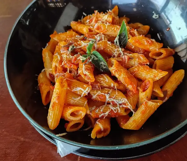 معكرونة أرابياتا (Arrabbiata) هي طبق إيطالي حار ومنعش يحتوي على نكهة رائعة. تُطهى معكرونة البين (penne pasta) حتى تنضج وتوضع جانباً. في مقلاة، يُقلى الثوم المفروم ورقائق الفلفل الأحمر في زيت الزيتون حتى تفوح رائحته. تُضاف الطماطم المهروسة المعلبة وتُترك على نار خفيفة حتى تتكاثف الصلصة. تُقلب المعكرونة المطبوخة في صلصة أرابياتا، وتُزيّن بالريحان الطازج المفروم وجبنة البارميزان المبشورة. طبق شهي ولذيذ لمن يتذوق النكهات الحارة.
