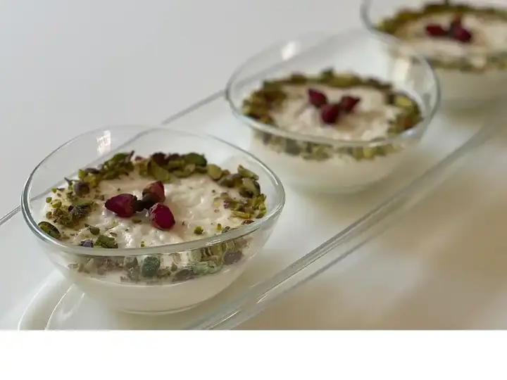 من الحلويات الشرقية السريعة والخفيفة التي انتشرت بين أهل إيران . ولتحضيرها اخلطي كوبًا من الحليب مع ملعقتين كبيرتين من النشا وربع كوب من السكر في وعاء على النار. قلبي المزيج حتى يغلي ويتكثف قليلاً. أضيفي ملعقة صغيرة من ماء الزهر -أو كما تسميه بعض البلاد ماء الورد- وصبي الخليط في أكواب التقديم. دعي المهلبية تبرد قليلاً ثم زينيها بالمكسرات المفرومة مثل الفستق والفول السوداني واللوزأو جوز الهند ثم قدميها لضيوفك ليجدوا في كل ملعقة من المهلبية اللذيذة الناعمة، تتوغل حبيبات المكسرات لتضفي لمسة خاصة من الغنى والتميز، كأنها تروي قصة فريدة من نوعها عن فن الطهي الشرقي.
