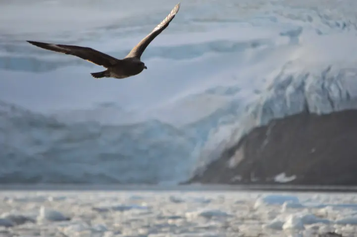 يعتبر طائر السكوا القطبي الجنوبي من الطيور البحرية الكبيرة التي تتغذى على الأسماك وصغار البطريق. وهي معروفة بسلوكها العدواني، خاصة عند الدفاع عن أعشاشها. طائر النوء الثلجي هو واحد من ثلاثة طيور فقط تتكاثر حصريًا في القارة القطبية الجنوبية. تعتمد هذه الطيور البيضاء النقية نظامًا غذائيًا يتكون أساسًا من الأسماك والكريل.
