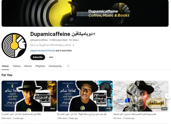 ناصر العقيل المحاسب السعودي الذي كان يعمل في بنك. تحول برنامجه دوباميكافين ليكون واحد من برامج اليوتيوب العربية الهامة. يتكون اسم دوباميكافين من مقطعين، الأول "دوبا" وهو كناية عن الدوبامين، والذي يعتبر من أهم أهم الهرمونات التي تسبب الرضا والسعادة، والمقطع الثاني هو "الكافين" وهو كناية لحب ناصر العقيل للقهوة بانواعها. البرنامج يقدم شرح واف لأهم الكتب العالمية في جميع المجالات، ولكن أكثر ما كتب لهذا البرنامج الشهرة، هو قوة ناصر العقيل التقديمية للمعلومات الموجودة في الكتب، وهو ما جعل المشاهد يشعر أنه قادر على قراءة كتاب في حلقة يوتيوب بدل من القراءة بشكل فعلي.