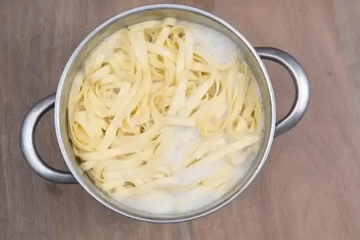 • أما بالنسبة للمعكرونة الطويلة مثل السباغيتي والفيتوتشيني، يمكنك فقط استخدام ملقط لنقل المعكرونة المطبوخة إلى قدر.