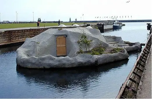 يبدو هذا المنزل العائم كأنه شيء من عصور ما قبل التاريخ، لكنه أحد المنازل العائمة الأكثر شهرة في العالم. تم رصد هذا المنزل الصخري العائم في الماء، وسرعان ما انتشرت صوره، على الرغم من عدم معرفة الكثير عن المالك أو سعره. تصميمه الفريد يجعله واحدًا من أكثر المنازل العائمة تطورًا وجذبًا للأنظار في العالم.