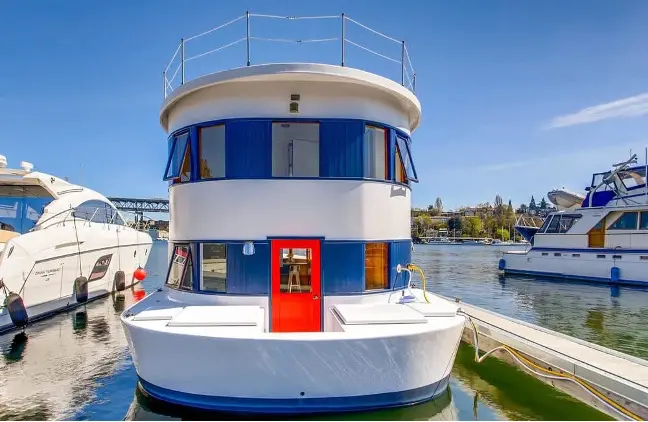 منزل القارب Orca في سياتل هو مثال رائع على كيفية تحويل المساحات الصغيرة إلى منازل عائمة عملية ومريحة. يتميز هذا المنزل العائم بتصميمه الحديث وكفاءته في استخدام المساحة، مما يجعله واحدًا من أشهر المنازل العائمة وأكثرها تطورًا في العالم ، و بفضل تكاليف الصيانة المنخفضة والتصميم المبتكر، يُعد هذا المنزل خيارًا مثاليًا لعشاق المنازل العائمة.