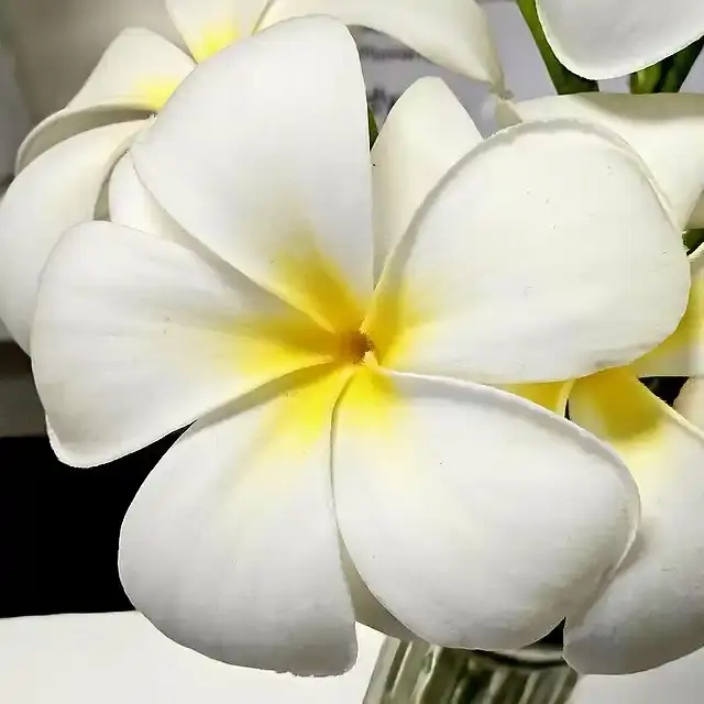 Plumeria alba هو نوع آخر يستخدم عادة في تنسيق الحدائق. إنه دائم الخضرة وأزهاره بيضاء مع مراكز صفراء.