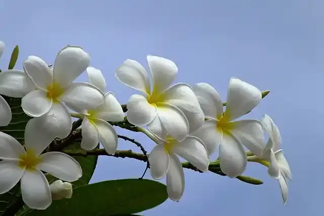 البلوميريا، المعروفة أيضًا باسم أزهار لي أو فرانجيباني، هي أشجار صغيرة عطرة مزهرة موطنها المكسيك ومنطقة البحر الكاريبي وأجزاء من أمريكا الجنوبية. هناك العديد من أنواع البلوميريا المزروعة كأشجار زينة، وكلها أعضاء في عائلة دوبان. في حديقة استوائية، فهي إضافة رائعة بأزهارها الجميلة وعطرها.