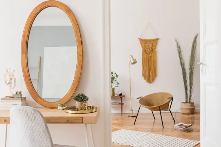 المرايا ليست فقط قطعة فنية ولكنها أيضا تعطي الشعور باتساع المكان وبالتالي، فهي قطعة لا غنى عنها للبيوت الصغيرة والغرف والممرات الضيقة. كما أنها بديل أقل تكلفة من اللوحات للديكور الداخلي.