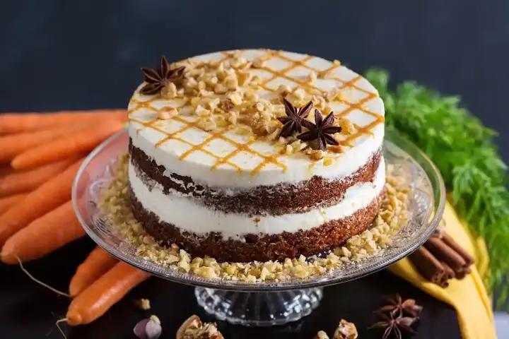 باستخدام المضرب الكهربائي نخلط السكر والبيض والزيت سويا ثم نضيف الجزر والدقيق وكل المكونات الجافة، بعدها نضيف الجوز ونقلب بالملعقة. ندهن صينية بالزيت ونصب الخليط ونتركها في فرن حرارته متوسطه لمدة 45 دقيقة.