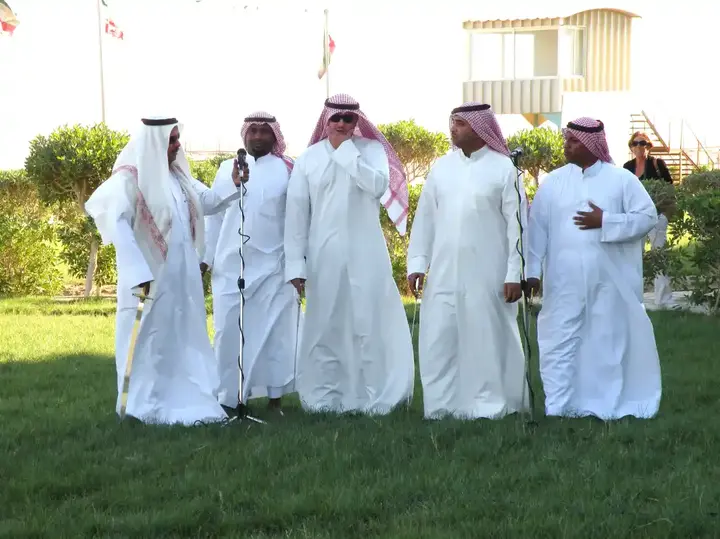• “العرضة” هي أشهر رقصة شعبية في الكويت، تُؤدى في المناسبات الوطنية والأعراس. يستخدم المشاركون الطبول والسيوف في هذه الرقصة الجماعية التي تُعبر عن الفخر والانتماء.