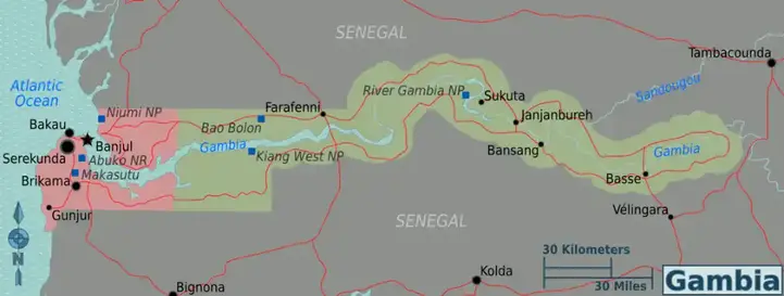 تقع غامبيا على الساحل الغربي لإفريقيا، وهي أصغر دولة في القارة. تمتد على طول نهر غامبيا الذي يشق طريقه من الشرق إلى الغرب ليصب في المحيط الأطلسي. يحدها السنغال من جميع الجهات باستثناء واجهتها الساحلية الصغيرة. على الرغم من صغر مساحتها، تتمتع غامبيا بتنوع طبيعي وثقافي مذهل يجعلها وجهة لا تُنسى.
