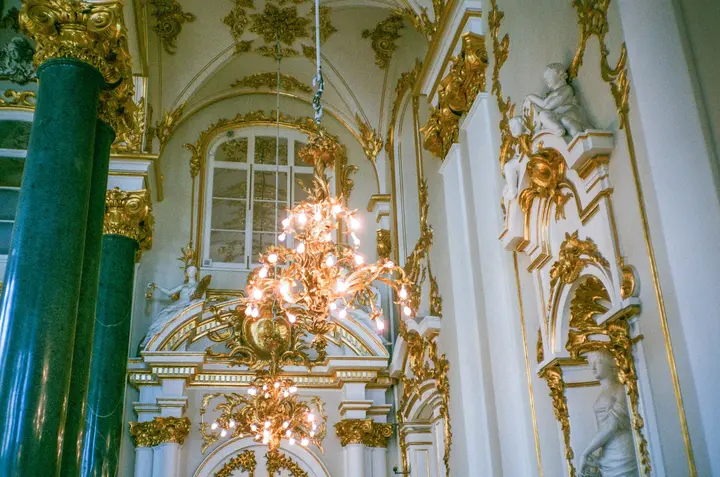 بدءًا من قصر بيترهوف، يعتبر هذا القصر أحد الوجهات الرئيسية للسياح في سانت بطرسبرغ. يجمع بين التصميم الباروكي الرائع والحدائق الواسعة التي تطل على البحر، ويعد مثالًا رائعًا على أسلوب البناء الروسي الكلاسيكي. بدوره، يفتح قصر وينتر أبوابه للزوار لاستكشاف العديد من الغرف الفاخرة التي تعكس تاريخ روسيا المجيد. أما قصر كاثرينهوف الباروكي فيتميز بأروقته الطويلة والأجنحة الفسيحة والديكور الفاخر، مما يضفي عليه جوًا من الفخامة والترف.