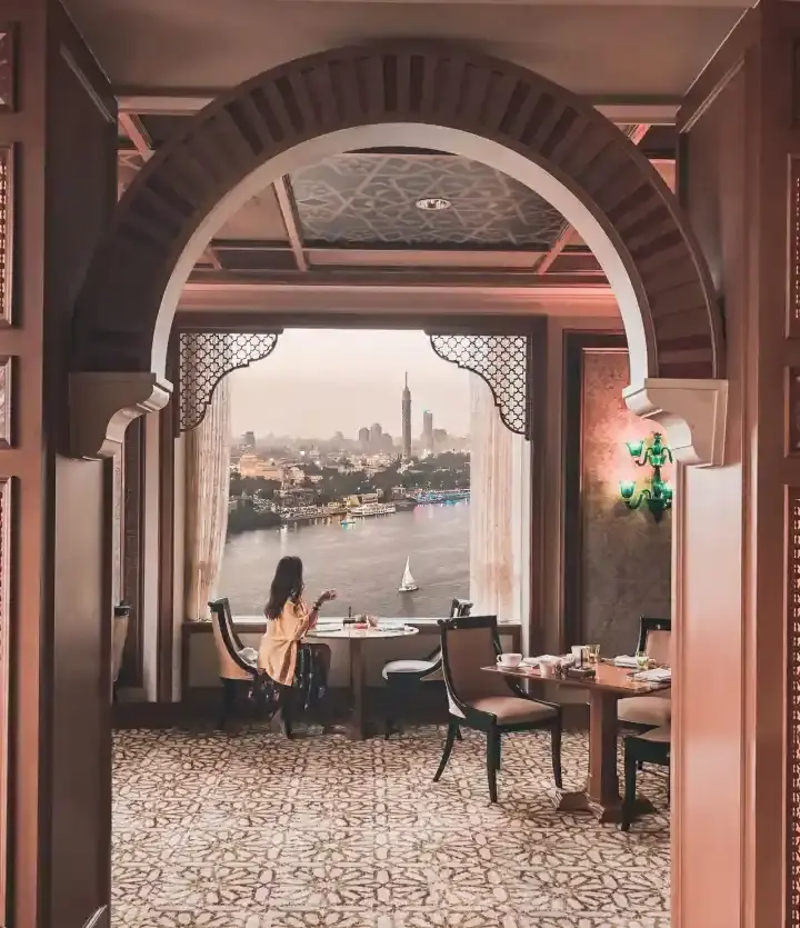 Take your taste buds to another level of luxury and elegance at Four Seasons Hotel Cairo, specifically at Zeitouni Restaurant, which overlooks the timeless Nile River. This restaurant serves traditional Egyptian dishes in a modern and refined style, using the finest fresh local ingredients. Do not miss the opportunity to taste the grilled pigeon dish with Egyptian spices, kunafa with cream, or various mahshi in different colors and flavors.
