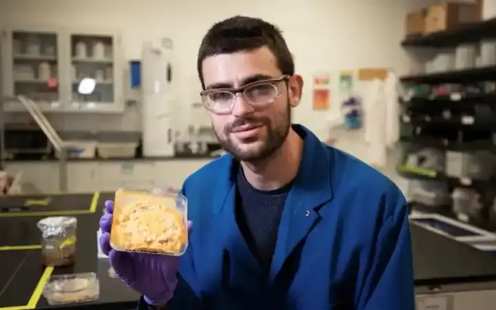 على مدى العامين الماضيين، كان هيل مايني يعمل مع فريق من الطهاة في Blue Hill at Stone Barns، وهو مطعم حاصل على نجمتي ميشلان في Pocantico Hills، نيويورك، لإنشاء أطباق لذيذة من عفن Neurospora المزروع على الحبوب والبقول، بما في ذلك اللب المتبقي من صنع حليب الشوفان. في مطعم بلو هيل، قد يستمتع رواد المطعم قريبًا بفطيرة من الحبوب مغطاة بفطر نيوروسبورا البرتقالي، مصحوبة بخبز متعفن - فطر نيوروسبورا البرتقالي الذي ينمو على خبز الأرز، والذي عندما يقلى، يصبح مذاقه ورائحته مثل شطيرة الجبن المحمصة. لكن هذه ليست سوى البداية بالنسبة لهيل مايني، وهو زميل ما بعد الدكتوراه في جامعة كاليفورنيا، بيركلي. في مختبر جاي كيسلينج، أستاذ الهندسة الكيميائية والبيولوجية الجزيئية في جامعة كاليفورنيا، بيركلي، كرس هيل مايني نفسه لفهم كل شيء عن نيوروسبورا إنترميديا