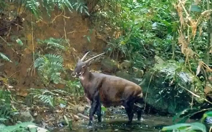 ٤. الساولا (Pseudoryx nghetinhensis) - مشاهداته نادرة؛ يُقدّر عددها بأقل من ١٠٠ فرد.