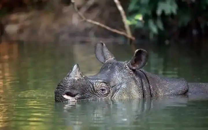 2. وحيد القرن الجاوي (Rhinoceros sondaicus) - لم يتبقَّ منه سوى أقل من 80 فرداً.
