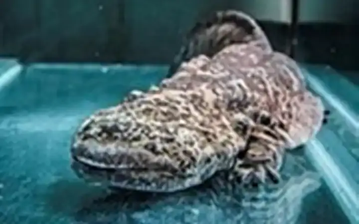 ٩. السمندل الصيني العملاق (Andrias davidianus) - انخفضت أعداده بسبب الصيد الجائر.