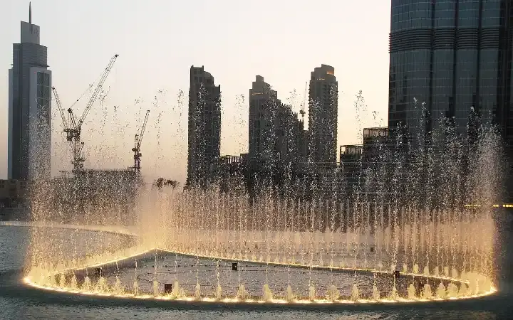 حيث أن جلسة تصوير البرج يمكنها أن تمتد لفترة طويلة ننصحك بإلتقاط بعض الصور بعدها بجوار نافورة دبي والتي تقع بقرب البرج. يمكنك الحصول على أفضل الصور الرومانسية للنافورة أثناء الليل حيث تتراقص مياه النافورة على الأنغام الموسيقية. ذلك المزيج من تراقص المياه في جو من الأضواء يمكنه أن يمنحك أفضل الصور إذا ما تأكدت من ضبط الكاميرا للتصوير الليلي.