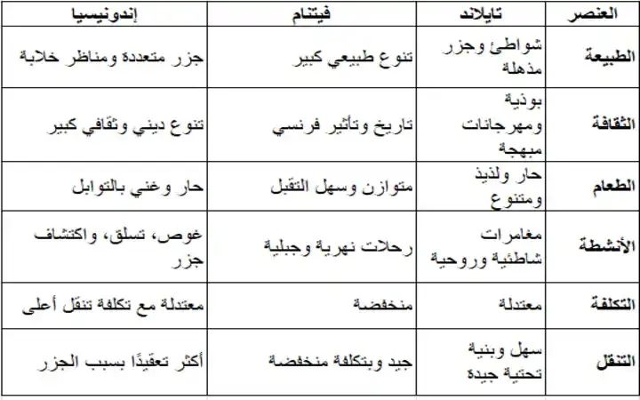 في هذا المقال، نأخذك في جولة مقارنة تفصيلية بين تايلاند، فيتنام، وإندونيسيا من جوانب متعددة تشمل الطبيعة، الأنشطة، الثقافة، الطعام، التكاليف، والتجربة العامة. الهدف؟ مساعدتك على اتخاذ قرار مستنير لرحلة استثنائية.