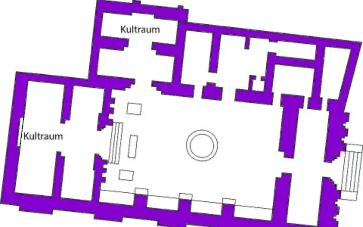 أبرز المعالم الأثرية المكتشفة هو المعبد الرئيسي الذي تبلغ أبعاده 28×18 مترًا. المعبد يتميز بتصميمه البسيط والعملي، ويُعتقد أنه كان مركزًا دينيًا هامًا في المدينة. إلى جانبه، تم اكتشاف معبدين صغيرين تم صيانتهما وتسقيفهما للحفاظ على تفاصيلهما المعمارية. هذا التنوع في المباني يعكس التعدد الوظيفي للمدينة، إذ كانت تؤدي دورًا دينيًا وإداريًا وتعليميًا في الوقت ذاته.
