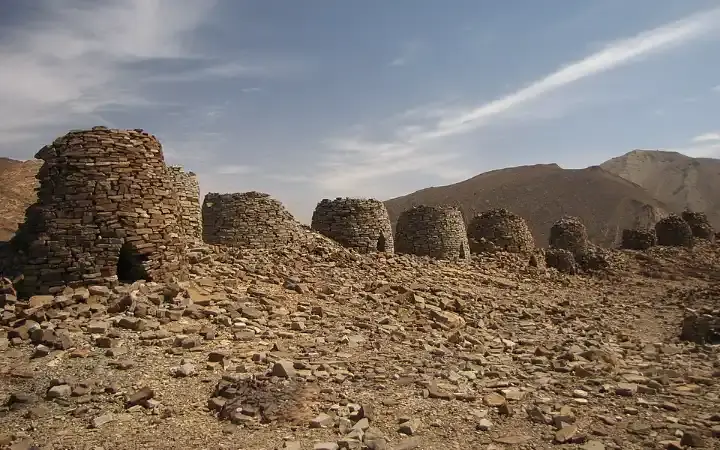 النواميس هي مجموعة من الهياكل الحجرية القديمة التي تتميز بشكلها الدائري وسقوفها المنخفضة. تم تشييد هذه المباني باستخدام الحجارة فقط، دون أي مواد لاصقة أو ملاط، حيث اعتمد البناؤون على تكديس الأحجار فوق بعضها بطريقة دقيقة ومتوازنة تضمن ثبات البناء على مر العصور. تتفاوت أقطار النواميس ما بين مترين إلى ستة أمتار، وفي الغالب تحتوي على فتحة واحدة صغيرة منخفضة تمثل المدخل، ما يمنحها مظهرًا مهيبًا وبسيطًا في الوقت نفسه. على الرغم من قِدمها الذي يقدره الباحثون بأكثر من 5000 عام، فإن العديد من هذه الهياكل لا يزال قائمًا حتى اليوم، ويُعد ذلك شهادة على براعة من أنشأها. اللافت في تصميم النواميس هو هندستها البسيطة والمتقنة التي سمحت لها بالبقاء صامدة رغم العوامل المناخية القاسية في الصحراء. هذه الأبنية ليست مجرد أنقاض أثرية، بل هي شواهد حية على ماضٍ غامض يستحق المزيد من البحث والتأمل.