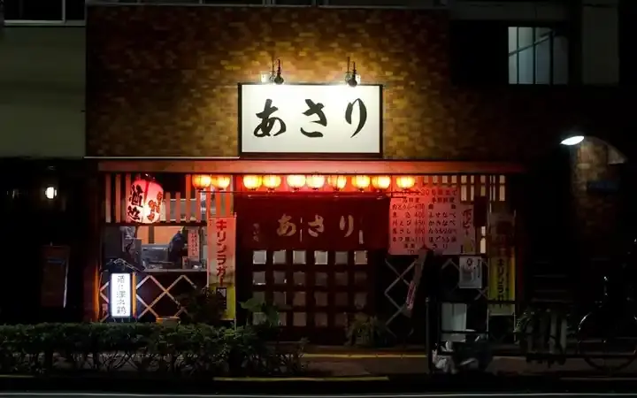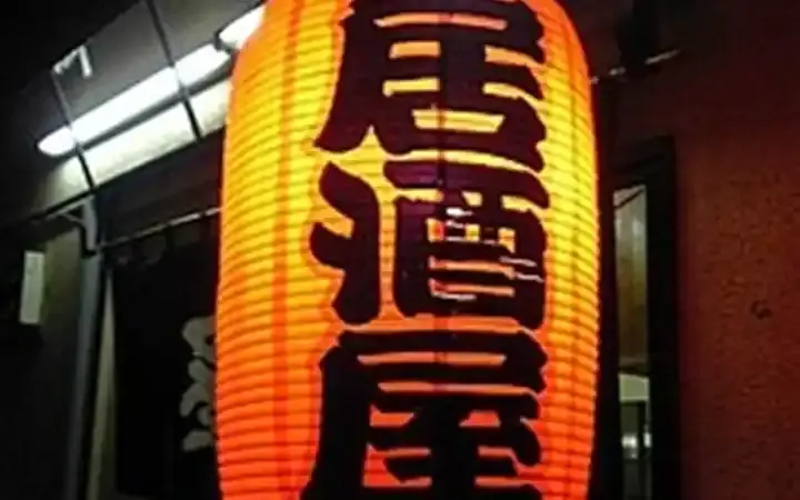 مطعم إيزاكايا في غوتاندا (Gotanda)، طوكيو. تُظهر اللافتة على اليمين قائمة طعام تتضمن أطباقاً عادية (يساراً) وأطباقاً رئيسية موسمية - نابي (يميناً).