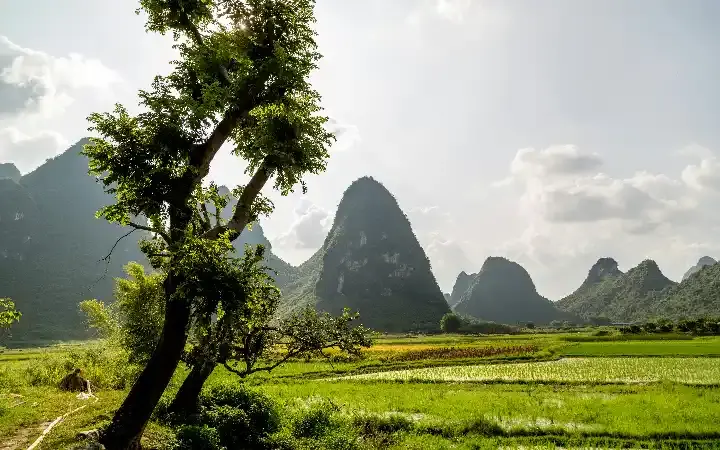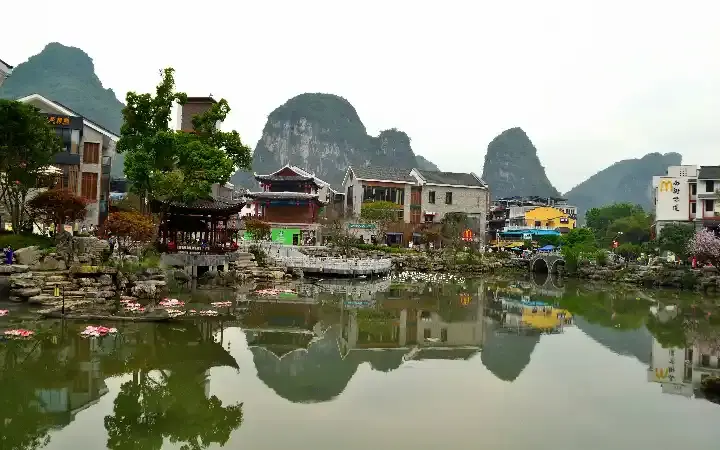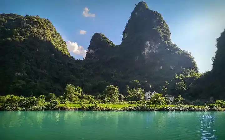 إن كنت قد أعجبت بنهر لي، فإن نهر يولونغ سيأسر قلبك بسحره البري. لا توجد مراكب كهربائية على هذا النهر، فقط القوارب المصنوعة من الخيزران، ويمنع استخدام المحركات حفاظًا على هدوء الطبيعة. على ضفاف النهر، ترى الجاموس المائي يرعى بهدوء، والفلاحين يحرثون الأرض، في مشهد يعود بك إلى بساطة الحياة الريفية الصينية.