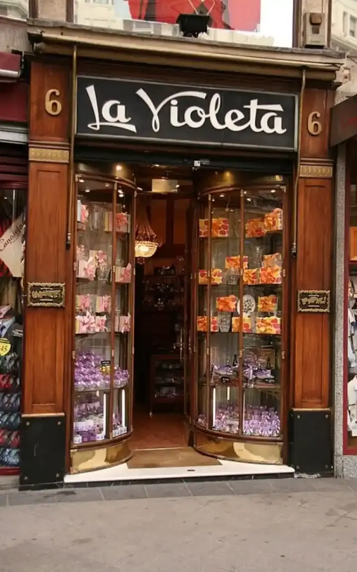 على الرغم من أن المتاجر الأخرى كانت تبيع الحلوى بنكهة البنفسج، إلا أن لا فيوليتا هو الذي جعلها مرادفاً لمدريد. أصبح المتجر مؤسسة مدريدية لا تشتهر بالحلوى فحسب، بل بواجهته التي تم الحفاظ عليها بأناقة: نوافذ على طراز الفن الحديث مليئة بأهرامات بنفسجية من البنفسج البنفسجي وأسطح خشبية مصقولة ومرايا مذهبة تعكس الوهج الناعم للمصابيح العتيقة.