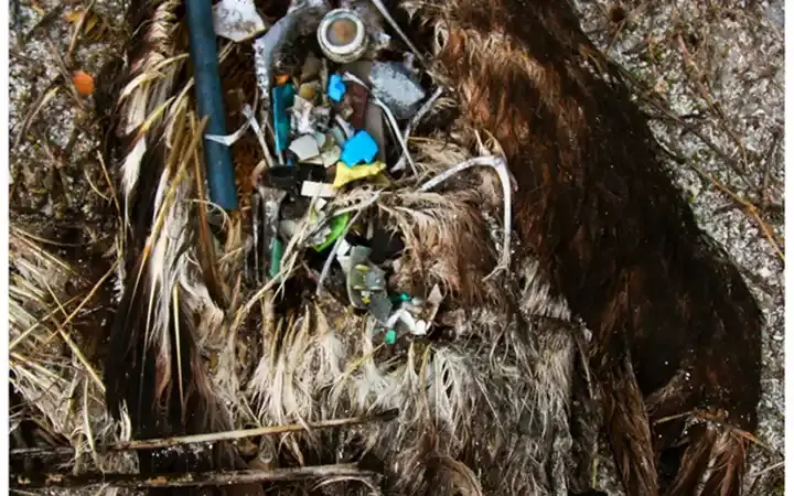 طير الباتروس (Phoebastria immutabilis) مات بسبب الجوع، وكانت المعدة ممتلئة بالبلاستيك الدقيق. لسبب "الشبع المفرط" الذي يحث على بسط المعدة، يتوقف الحيوان عن التغذية. ولا يمكن أن تتسبب العصارات القوية الهضمية في المعدة في تدمير البلاستيك