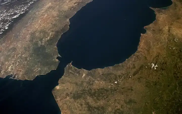 صورة فضائية لمضيق جبل طارق تُظهر قرب المسافة بين إفريقيا وأوروبا