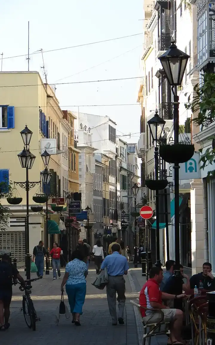 شارع رئيسي في جبل طارق يعكس التنوع الثقافي والمعماري للمدينة