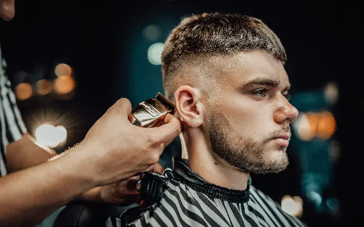الشعر يُقص قصيرًا من الخلف والجوانب، مع ترك الجزء الأمامي مائلًا للأمام. هذه القصة حديثة وعملية، وتمنح مظهرًا عصريًا ومميزًا.