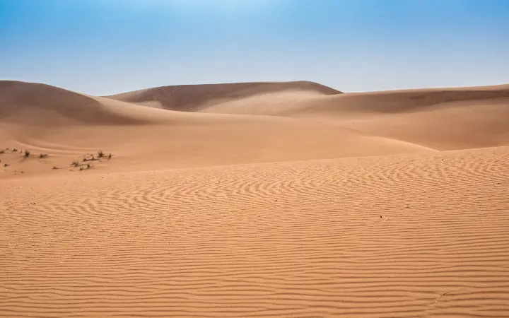 الصحراء هناك ليست مجرد كثبان رملية، بل هي لوحة فنية من الألوان المتدرجة بين الذهبي والبرتقالي. عند شروق الشمس وغروبها، يتحول المكان إلى مشهد سينمائي خلاب. هذا بالإضافة إلى الهدوء العميق الذي يجعل الربع الخالي واحدًا من أكثر الأماكن صفاءً على كوكب الأرض.