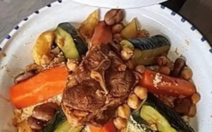 كسكس فاخر يُقدّم مع الخضار والحمص